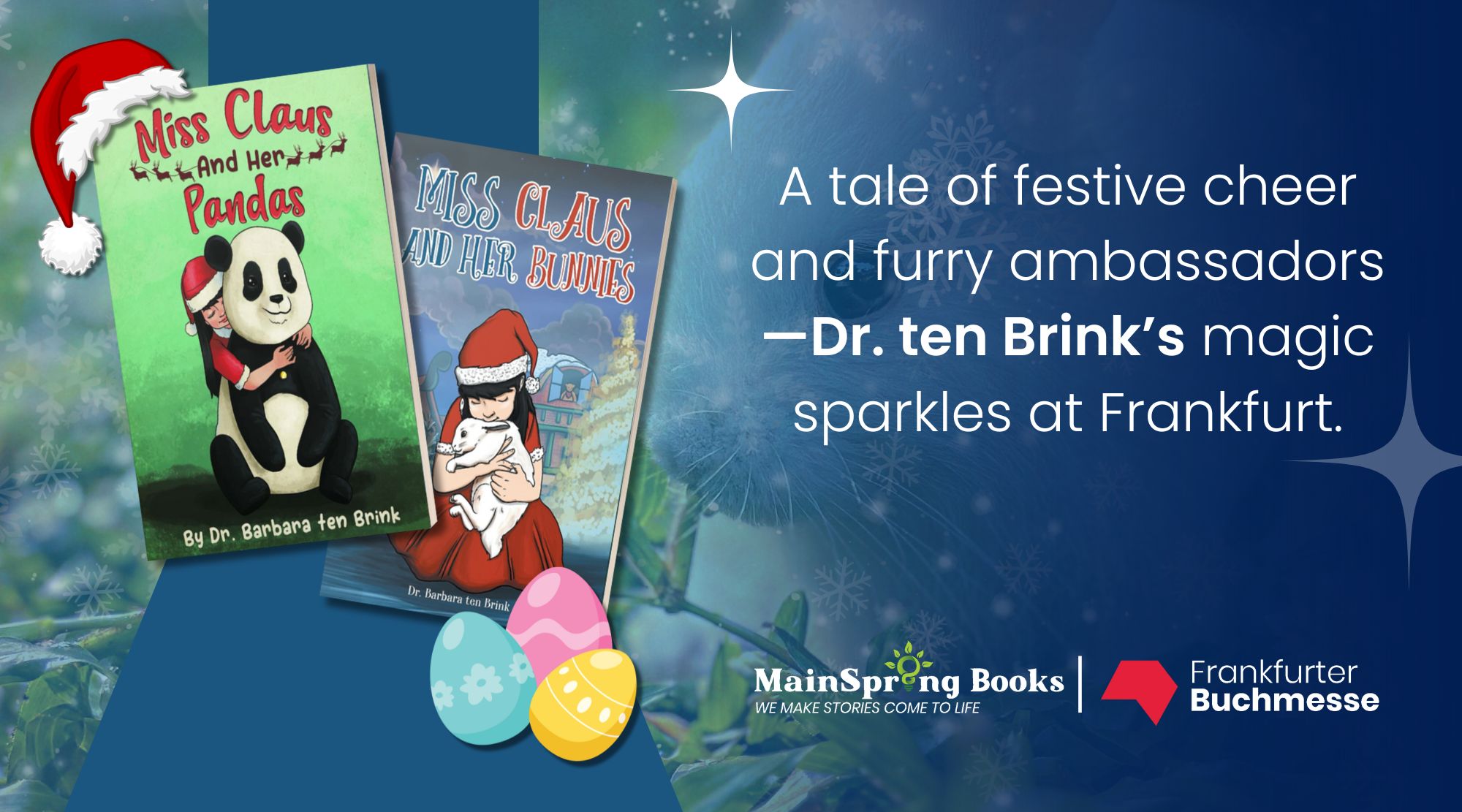 LOS ANGELES, CA, UNITED STATES, October 7, 2025 /EINPresswire.com/ -- MainSpring Books is delighted to share that Dr. Barbara ten Brink, a prolific author with more than 20 published works spanning multiple genres, will be featured at the 2025 Frankfurt International Book Fair (Frankfurter Buchmesse). Known for her creativity and range, she will introduce her latest children’s Christmas book, Miss Claus and Her Pandas, continuing the whimsical adventures that have delighted young readers and families around the world. Fairgoers can connect with Dr. ten Brink herself, who will share the inspirations behind her work and personally sign complimentary copies of her book.