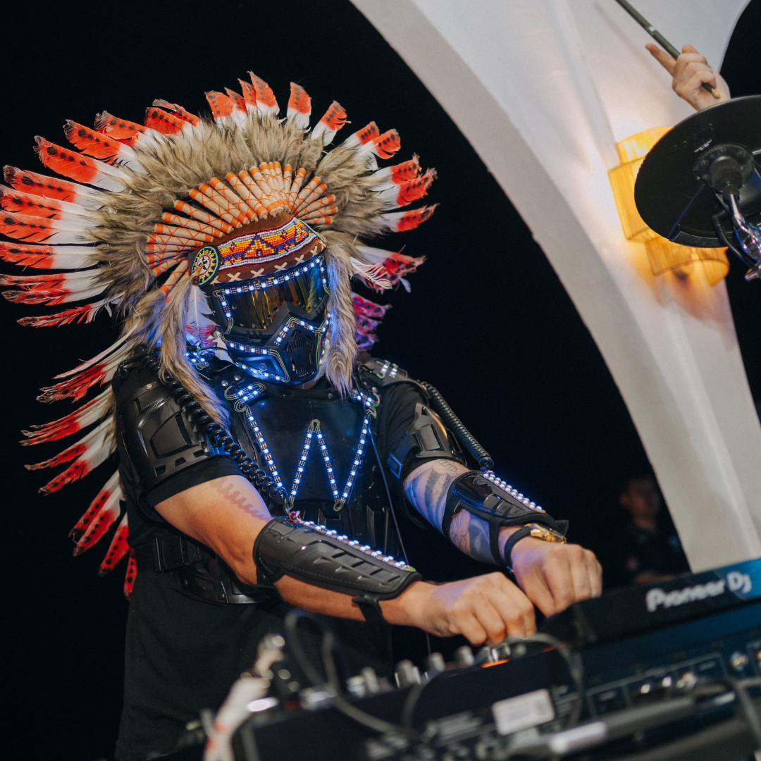 The live DJ energizes the crowd with upbeat Latin rhythms, setting the perfect vibe for Casa Boho’s Noche Bohemia celebration